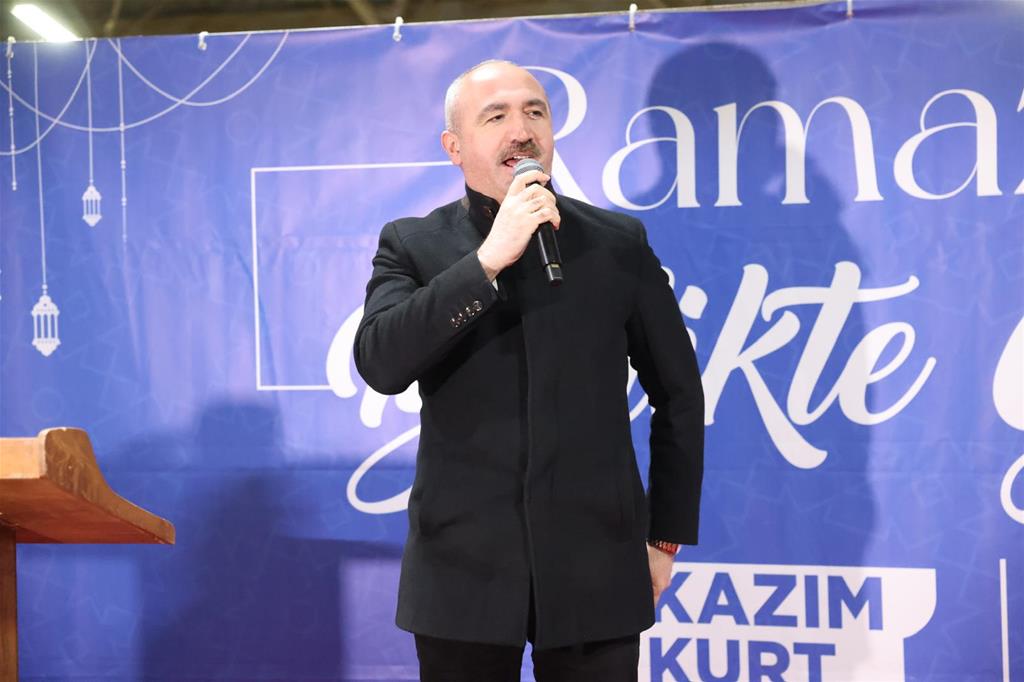 Konuşmasına tutulan oruçların kabul olmasını dileyerek başlayan Başkan Kurt, “Emek Mahallemizde her sene yaptığımız gibi yan yana geldik, birleştik; bir olduk iftarımızı açtık. Allah tuttuğunuz oruçları kabul etsin. Bu sofralar bereket sofraları, Halil İbrahim sofraları. Bizleri yan yana getiren sofralar. Burada hep iyi şeyleri konuşmamız lazım. Onun için savaşsız, sömürüsüz bir dünya isteğimizi yüksek sesle dile getirmemiz lazım. Ve her şey çok güzel olsun diye dua etmemiz lazım” dedi.