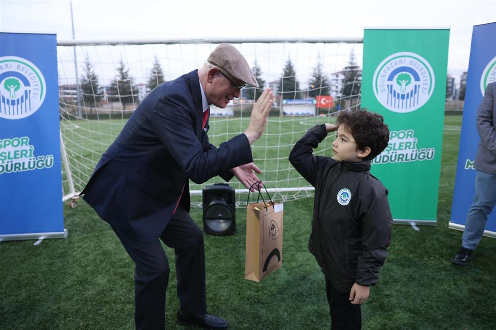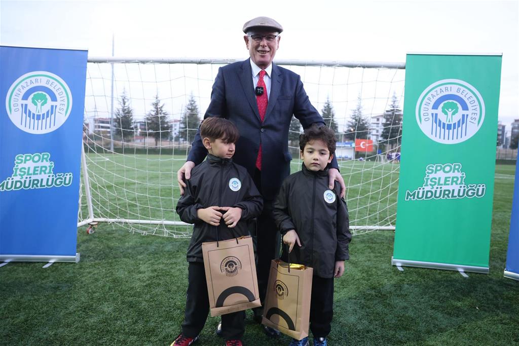 Odunpazarı Belediye Başkanı Kazım Kurt, Hasan Doğan Spor Tesisleri’nde düzenlenen futbol antrenmanına katılarak Odunpazarı Belediyesi Spor İşleri Müdürlüğü’nün Spor Kış Okullarında futbol eğitimi alan çocuklarla bir araya geldi. Başkan Kurt, çocukların heyecanına ortak olurken, Spor Kış Okullarında eğitim gören 43 minik sporcuya kramponlarını hediye etti.