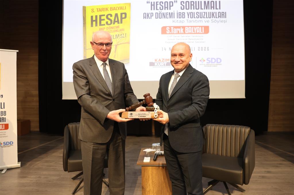 Konuşmaların ardından CHP Genel Sekreter Yardımcısı ve Sosyal Demokrat Belediyecilik Eşgüdüm Konseyi Genel Sekreteri S. Tarık Balyalı’nın “Hesap Sorulmalı: AKP Dönemi İBB Yolsuzlukları” adlı kitabını anlattığı söyleşiye geçildi. Yoğun katılımla gerçekleşen etkinlikte Balyalı, kitabında yer verdiği iddialar ve bulgular üzerinden yerel yönetimlerde şeffaflık, denetim ve kamu kaynaklarının kullanımı üzerine değerlendirmelerde bulundu. Söyleşide, kamu yönetiminde hesap verebilirliğin demokrasinin temel unsurlarından biri olduğu vurgulanırken, yurttaşların bu süreçteki rolüne de dikkat çekildi. Geçmişte soruşturma konusu dahi yapılamayan meseleler nedeniyle bugün arkadaşlarının cezaevinde bulunduğunu dile getiren Balyalı, “Basın yeterince yer vermese de sosyal medya üzerinden İstanbul Büyükşehir Belediyesi’ndeki arkadaşlarımızın nasıl hesap verdiğini hepimiz görüyoruz. Ben haftada bir gün mutlaka cezaevine gidiyorum ve duruşmalara katılıyorum. Diğer günlerde ise arkadaşlarımın savunmalarını okuyorum. Benim birlikte görev yaptığım arkadaşlarımın neler yaptığını çok iyi biliyorum ve anlattıkları her şeye şahidim. Hepsi tertemiz ve mücadelelerini kararlılıkla sürdürüyorlar. Her ifadeleri, bu davanın ne kadar siyasi olduğunu bir kez daha ortaya koyuyor” dedi.
