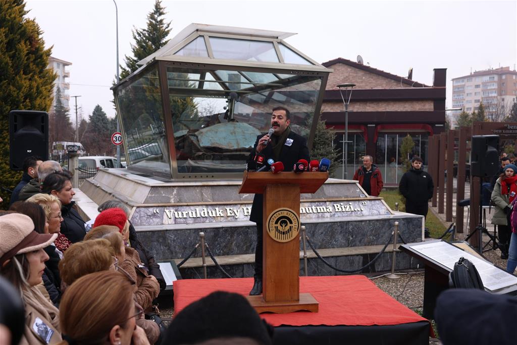 Mumcu cinayetinin hesabının sorulamamasının yeni cinayetlerin önünü açtığını dile getiren Başkan Kurt, “Uğur Mumcu'nun cinayetinin hesabı sorulamadığı için, Gaffar Okkan'ın cinayetine de engel olunamadı” dedi. Sorunun bireylerden çok sistemle ilgili olduğunu belirten Başkan Kurt, “Demek ki terörün kendisi dışında herkes düşmanı. O zaman sorun terörü bitirmekte, terörün sonuna kadar ortadan kaldırılması için bir hukuk düzeninin kurulmasında” şeklinde konuştu. Laiklik ve demokrasi vurgusu da yapan Başkan Kurt, “Eğer bunu kuramazsak, eğer bunu çözemezsek Uğur Mumcu gibi demokrat olanlar, Uğur Mumcu gibi laikliği savunanlar, Uğur Mumcu gibi cumhuriyeti savunanlar her zaman tehlikededir” dedi. Konuşmasının devamında küresel güçlere de atıfta bulunan Başkan Kurt, “Çünkü Amerika, işte Mossad, birtakım düzenekleri kuruyor ve dünyayı kendi istemi doğrultusunda yönetmeye çalışıyor. Esas görmemiz gereken bataklık orasıdır” diye konuştu. “2026 yılında da Amerika katil” diyen Başkan Kurt, “Bu hesabı soramayan dünya teslim olmak durumundadır. Buna itiraz ediyoruz. Buna hayır diyoruz” ifadelerini kullandı. Türkiye’de direniş ruhunun yok edilemeyeceğini vurgulayan Başkan Kurt, “Türkiye'de buna direnecek Kuvayı Milliye ruhunu ortadan kaldırmaya hiç kimsenin gücü yetmez” dedi.