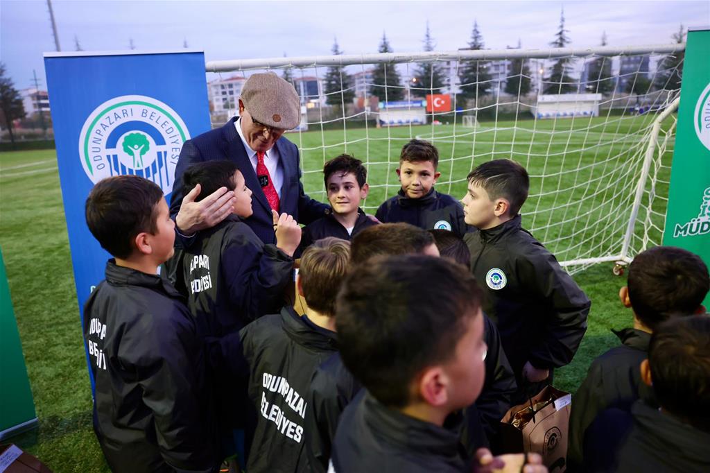 Odunpazarı Belediye Başkanı Kazım Kurt, Hasan Doğan Spor Tesisleri’nde düzenlenen futbol antrenmanına katılarak Odunpazarı Belediyesi Spor İşleri Müdürlüğü’nün Spor Kış Okullarında futbol eğitimi alan çocuklarla bir araya geldi. Başkan Kurt, çocukların heyecanına ortak olurken, Spor Kış Okullarında eğitim gören 43 minik sporcuya kramponlarını hediye etti.