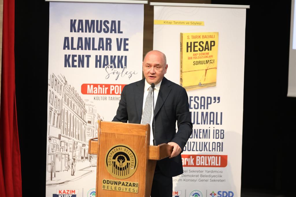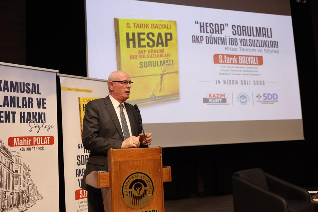 Konuşmaların ardından CHP Genel Sekreter Yardımcısı ve Sosyal Demokrat Belediyecilik Eşgüdüm Konseyi Genel Sekreteri S. Tarık Balyalı’nın “Hesap Sorulmalı: AKP Dönemi İBB Yolsuzlukları” adlı kitabını anlattığı söyleşiye geçildi. Yoğun katılımla gerçekleşen etkinlikte Balyalı, kitabında yer verdiği iddialar ve bulgular üzerinden yerel yönetimlerde şeffaflık, denetim ve kamu kaynaklarının kullanımı üzerine değerlendirmelerde bulundu. Söyleşide, kamu yönetiminde hesap verebilirliğin demokrasinin temel unsurlarından biri olduğu vurgulanırken, yurttaşların bu süreçteki rolüne de dikkat çekildi. Geçmişte soruşturma konusu dahi yapılamayan meseleler nedeniyle bugün arkadaşlarının cezaevinde bulunduğunu dile getiren Balyalı, “Basın yeterince yer vermese de sosyal medya üzerinden İstanbul Büyükşehir Belediyesi’ndeki arkadaşlarımızın nasıl hesap verdiğini hepimiz görüyoruz. Ben haftada bir gün mutlaka cezaevine gidiyorum ve duruşmalara katılıyorum. Diğer günlerde ise arkadaşlarımın savunmalarını okuyorum. Benim birlikte görev yaptığım arkadaşlarımın neler yaptığını çok iyi biliyorum ve anlattıkları her şeye şahidim. Hepsi tertemiz ve mücadelelerini kararlılıkla sürdürüyorlar. Her ifadeleri, bu davanın ne kadar siyasi olduğunu bir kez daha ortaya koyuyor” dedi.